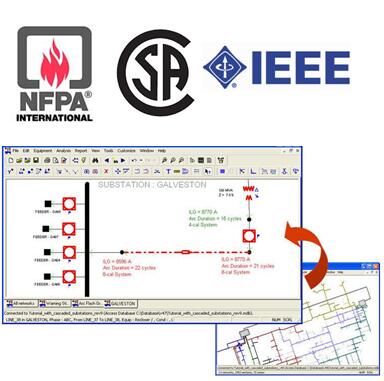 为了保护在电力设备附近的工作人员的安全性,通过分析工作区域电网情况。自动计算评估危险等级和足够安全等级所必需的参数,它遵守NFPA 70E-2004、IEEE 1584-2002标准,同时适用各类不同设备种类的燃弧故障计算分析。 能够生成各样的报表,并可直接打印在燃弧故障的全天候性报警贴纸标签上。